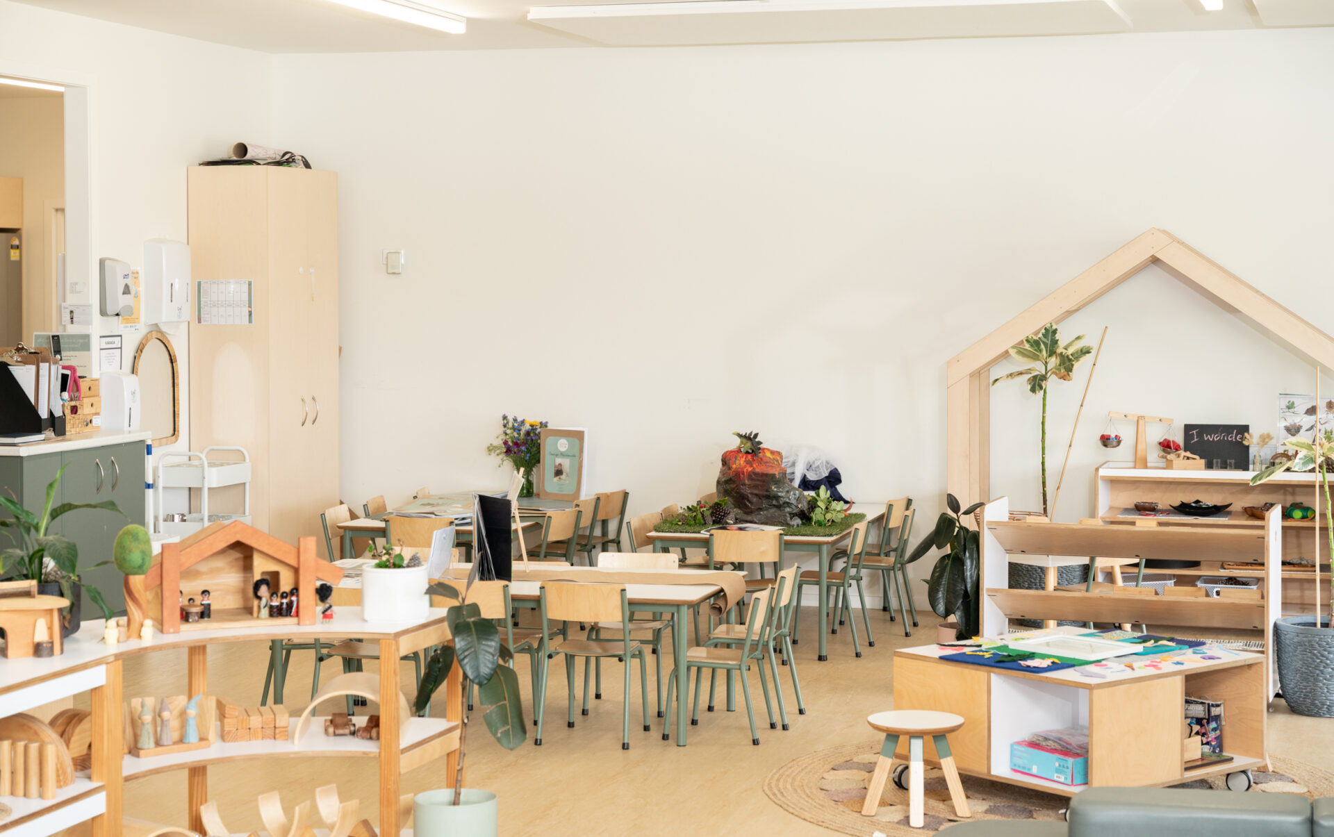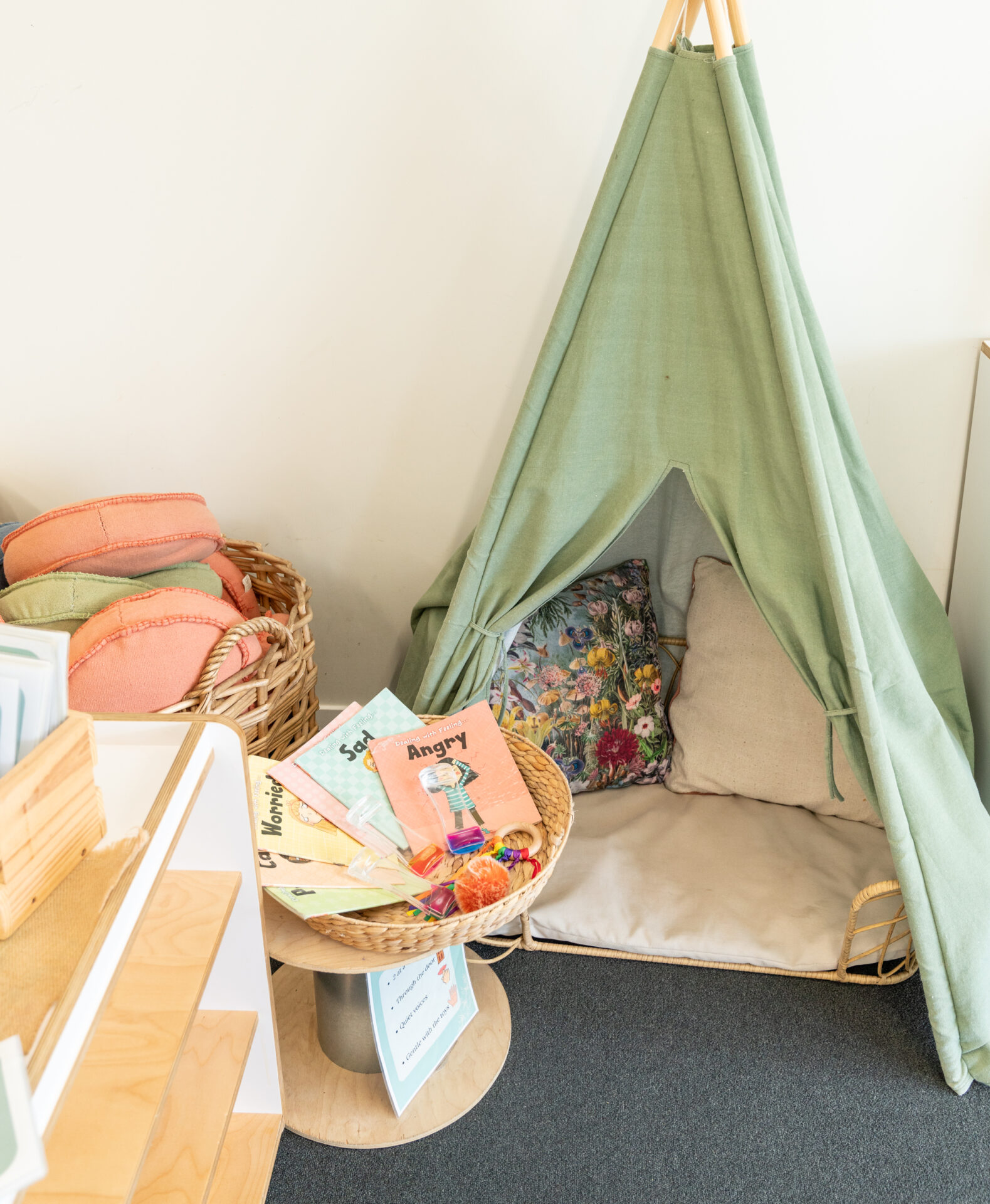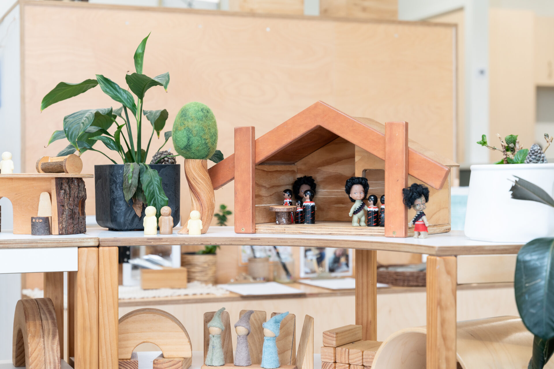 Our spaces are carefully curated to create a calm, relaxed home away from home environment for our tamariki. We prefer to use resources made from natural products such as wood, stone, and metal over plastic.